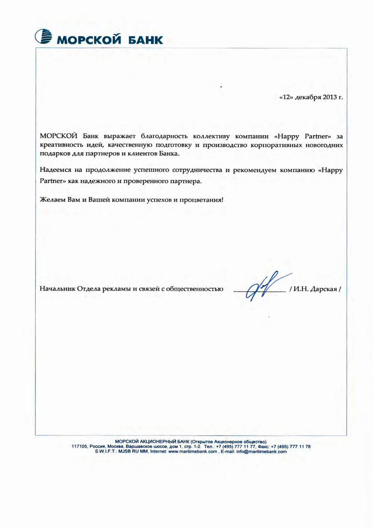 Отзывы о креативных решениях от Happy Partner