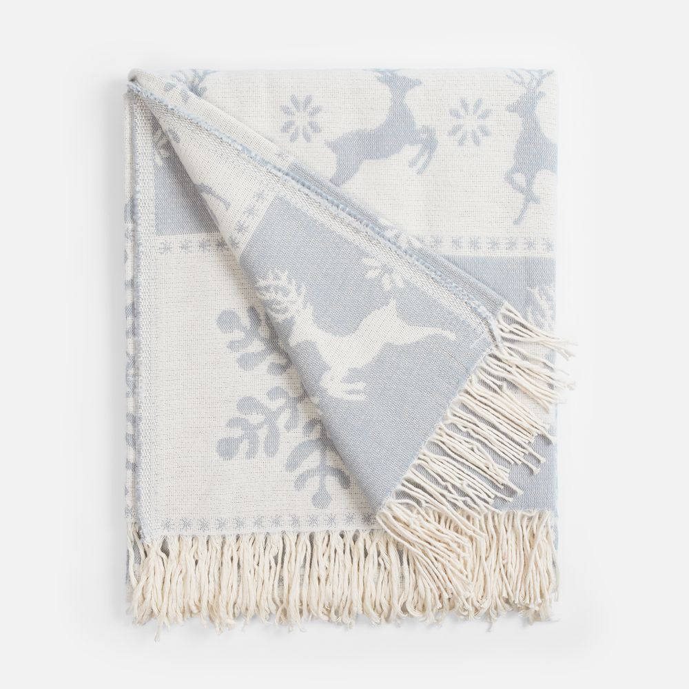 Уникальный жаккардовый рисунок с изображением грациозных оленей и изящных снежинок перенесет в мир северной сказки. Каждая деталь узора тщательно проработана и сразу привлекает внимание, а плед моментально создает неповторимую атмосферу зимнего волшебства.
